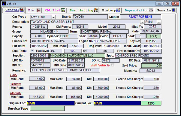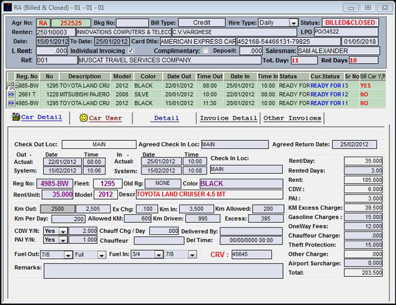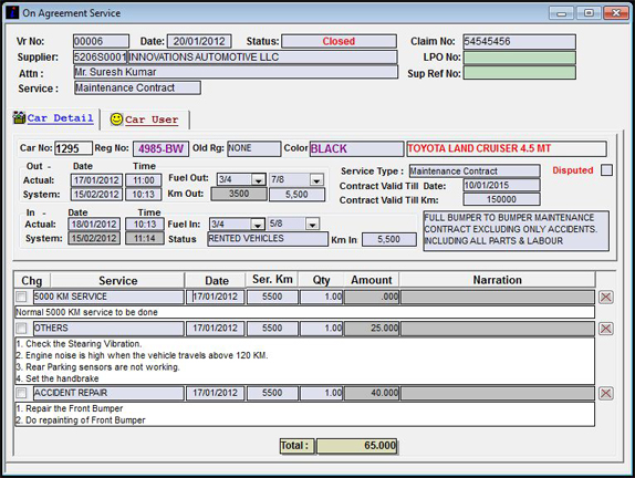 ACCURATE ensures profits and growth to user establishments, high productivity minimizes errors, eliminates accounting problems, recovery of vehicle damage cost and many other features, including providing a gallery of vehicle inventory and optimum utility of the fleet to every operator.